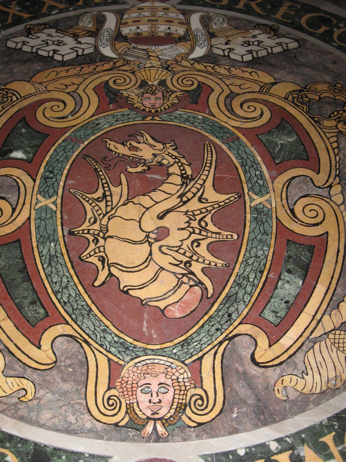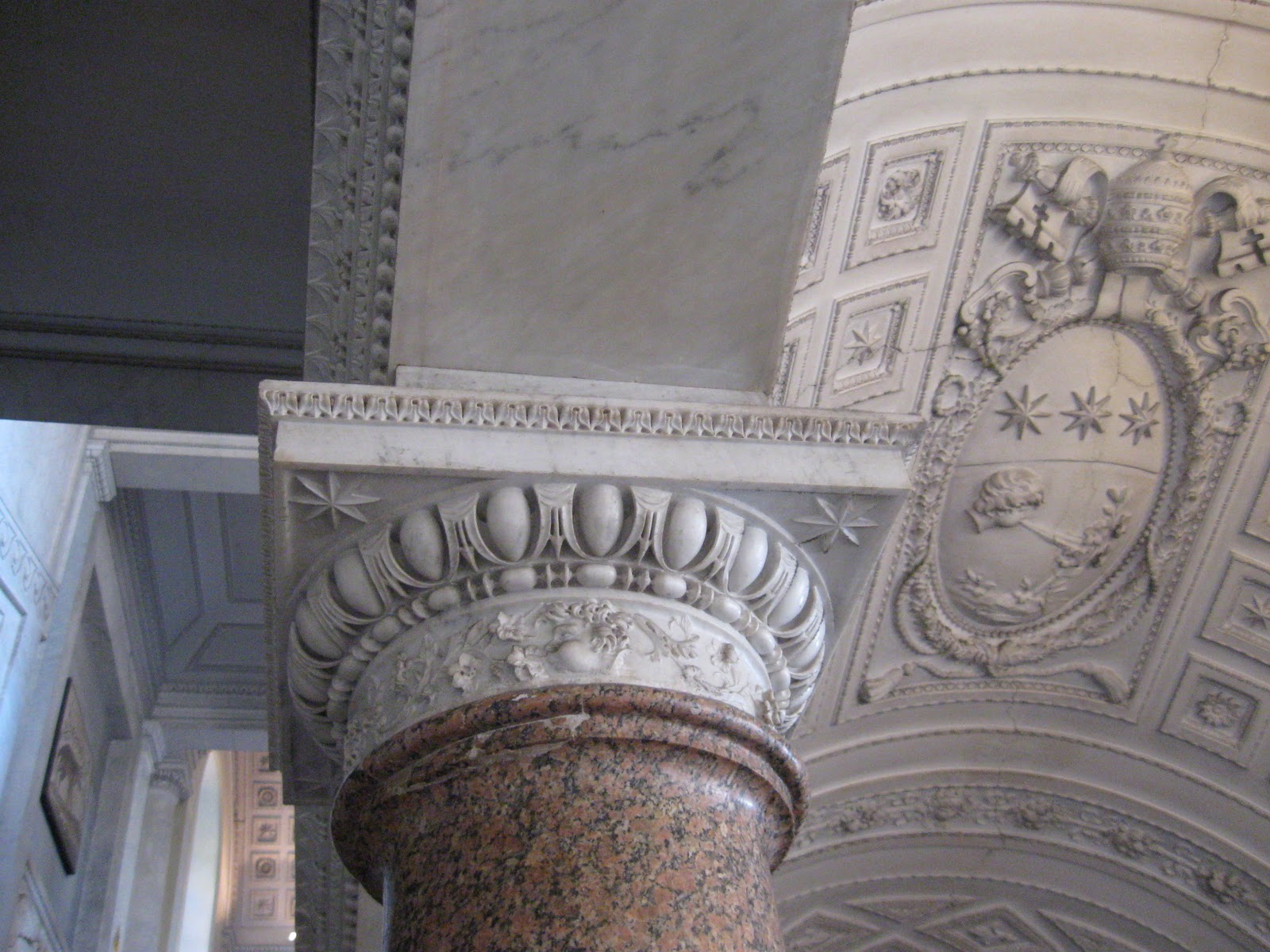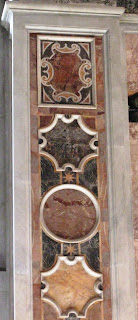 | Coming down a little there are numerous inlaid marble columns |