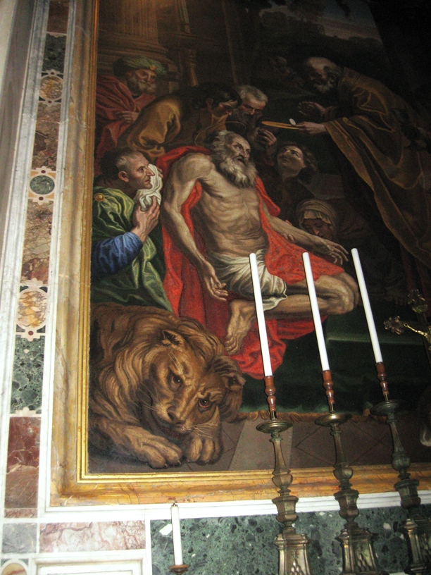 | Like most of the “paintings” in St. Peter’s, this, St. Jerome’s Last Communion, is a mosiac. |