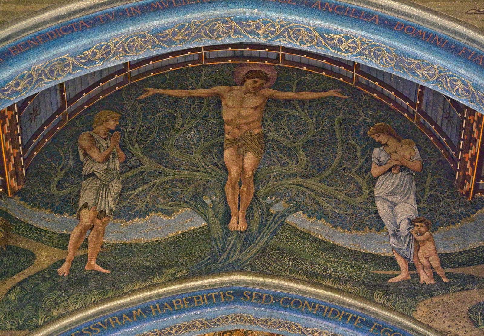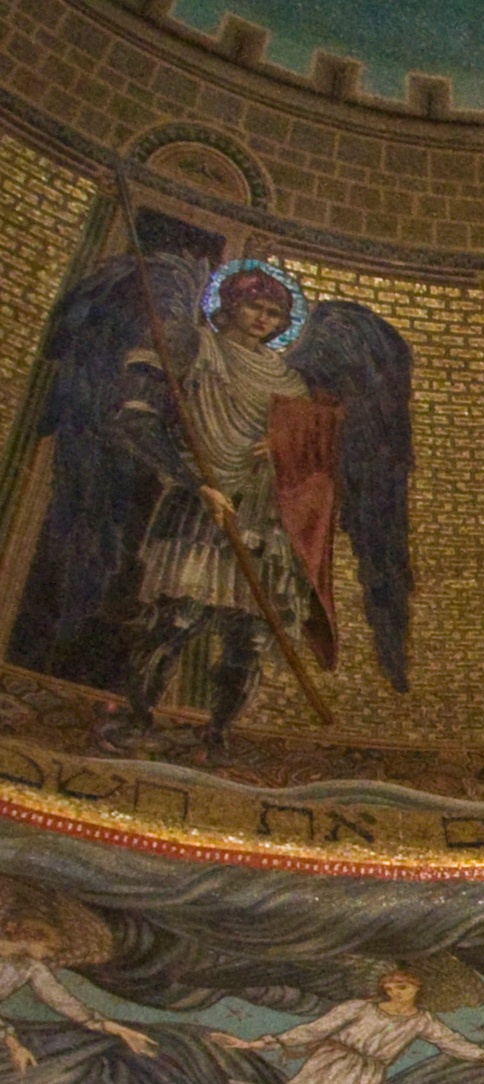 On arriving in Rome our first stop was–wait for it!–St Paul’s Within the Walls, the American Episcopal Church in Rome—the first non-Catholic church in Rome. An unusual lovely little church decorated by the pre-Raphaelite artist Edward Burne-Jones in mosaics. It is not well known, and rather hard to find in guidebooks. (If you are interested in visiting, it is on Via Nazionale, Rome). Remarkably we had seen the painting these mosaics were based on up close at an exbibition at the Ashmolean museum in Oxford a few months earlier. The mosaics are much more striking than the paintings.