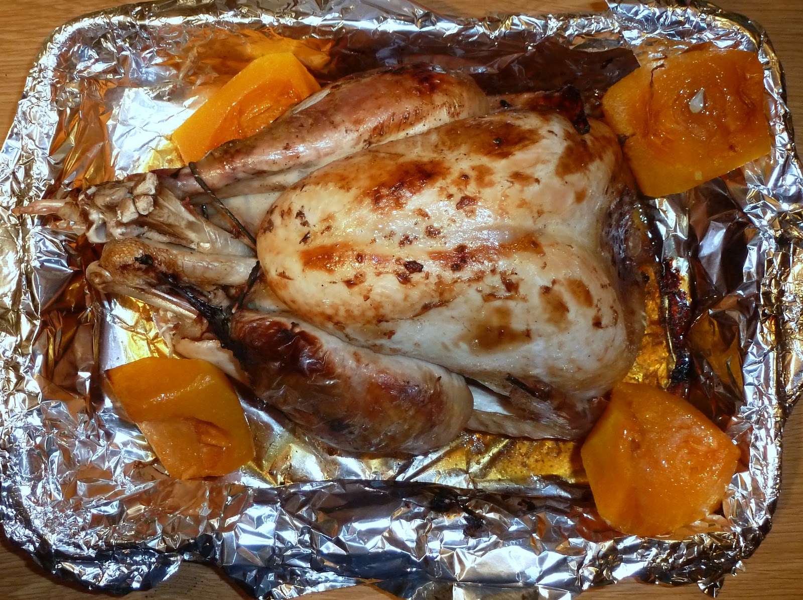 We had turkey today. When he visited Tesco on Boxing Day, with our fitness conscious 12 year old, who oddly wanted to snap up discounted boxes of chocolates with her Christmas money, he found a happy collection of men and women of every race and colour standing by the turkeys, their carts filled with as many as 15 turkeys! Rumour had it that they were going to be marked down at 5.50 p.m. just before closing. So Roy and the girls chose this little turkey, and waited, till the lady arrived, and marked down each turkey to £1.90.