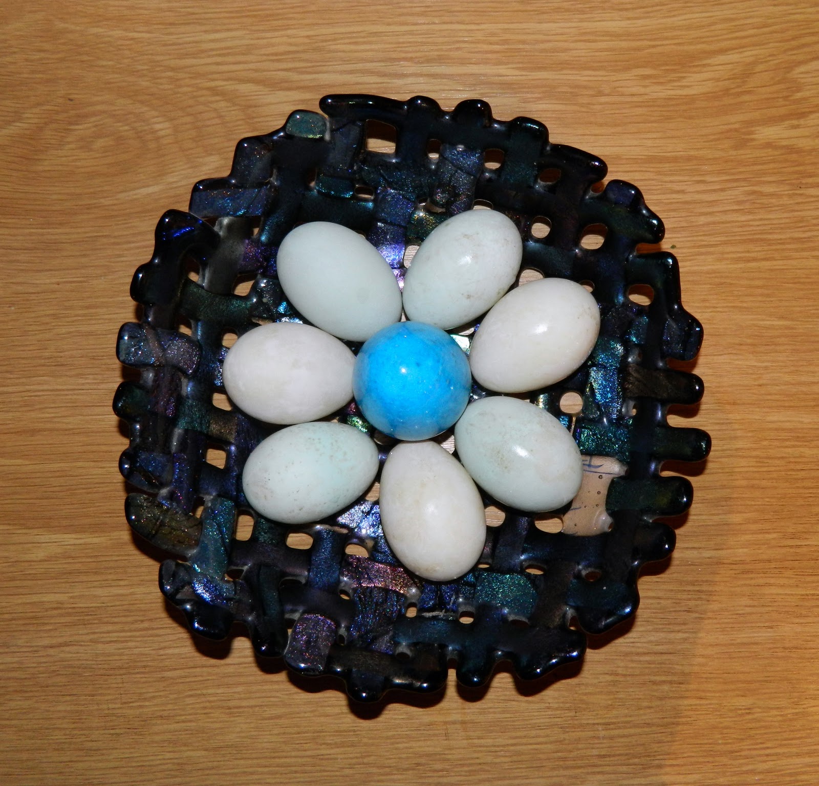 Fresh duck eggs, laid by Buttercup and Daisy, our Indian runner and Aylesbury duck. The thin Indian runner lays the blue eggs, the Aylesbury the white. The marble egg in the centre, is for fun. And yes, we are going to have fresh omelettes tomorrow.