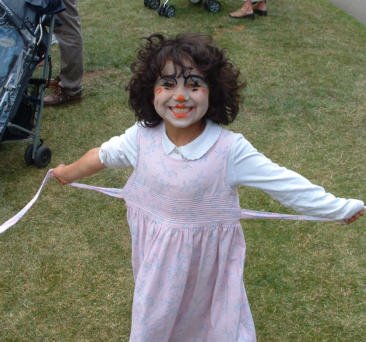 | Irene, delighted with and thankful for the sash of her new dress! |