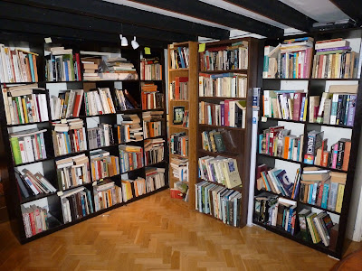 My heroine. What books!! Rare first editions, many signed, furred with dust, in every nook of a four storey house. “He didn’t know when to stop,” she explains. “When he wanted me to build an arch over our bed for books, it was a health and safety issue. ‘It’s the books or me,’ I said.”