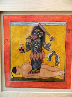 | Kali, Goddess of destruction with Shiva and Vishnu’s dead bodies in one hand. |