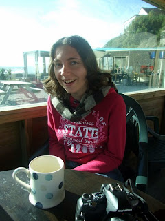 A cheerful breakfast before a walk in the woods. |