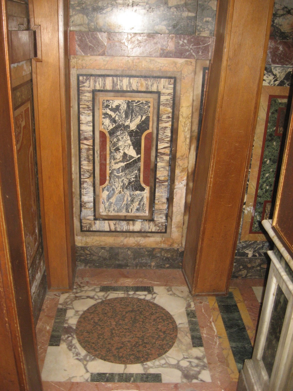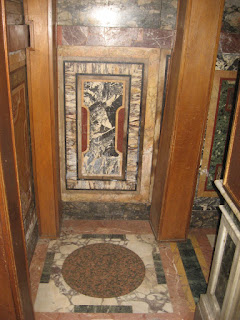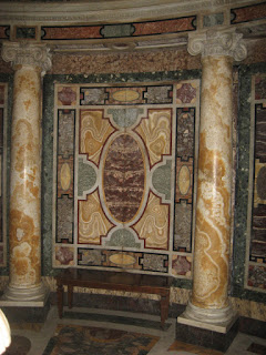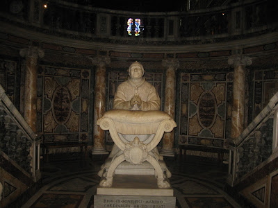 Here is a statue of Pope Pius IX praying in front of a reliquary supposedly containing fragments of Christ’s crib. Notice the wonderful coloured marble on the walls.