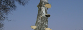This interesting silver birch on the street outside C. S. Lewis' house has a "ladder" of bracket fungi growing up it. This photo is taken with a flash.A detail of the bracket fungus, and another shot of the tree without a flash. … [Continue reading]