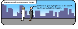 H/t Asbo JesusMatthew 19 16-30The Rich and the Kingdom of God 16 Just then a man came up to Jesus and asked, “Teacher, what good thing must I do to get eternal life?”He has the longing for spiritual things that many good people have. 17 “Why do you … [Continue reading]